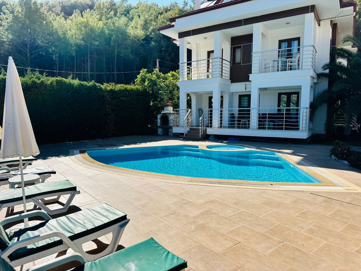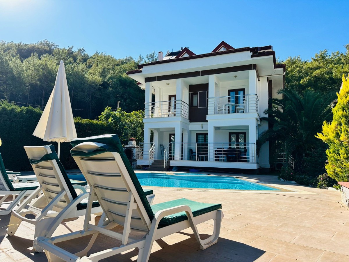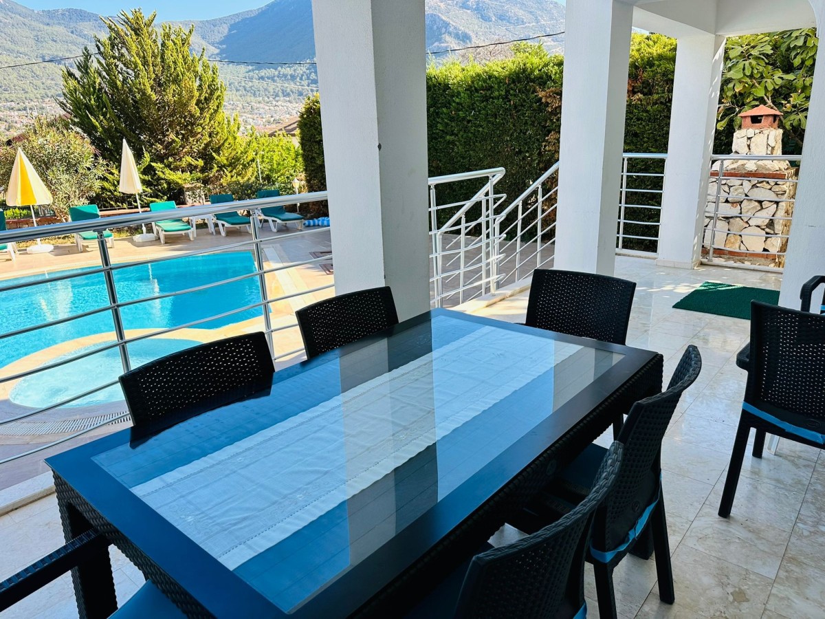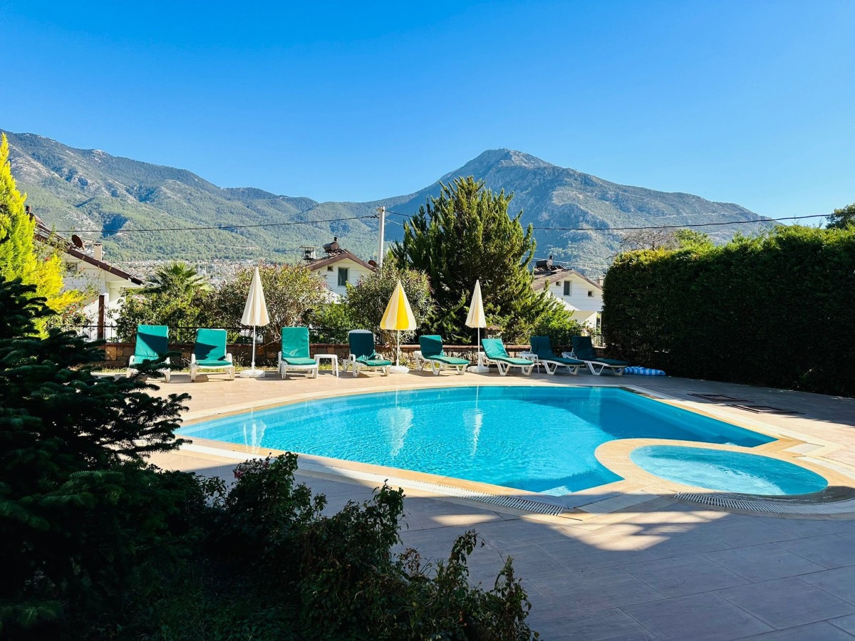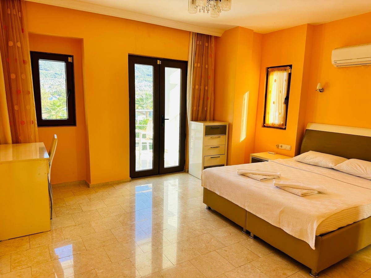 4 yatak odalı, özel havuzlu ve çocuk havuzlu, geniş ailelere uygun tatil villası, Hisarönü merkezine 800 metre yürüme mesafesindedir. 2 adet suit yatak odası ve ortak banyolu 2 adet tek kişilik yatak odası bulunmaktadır.